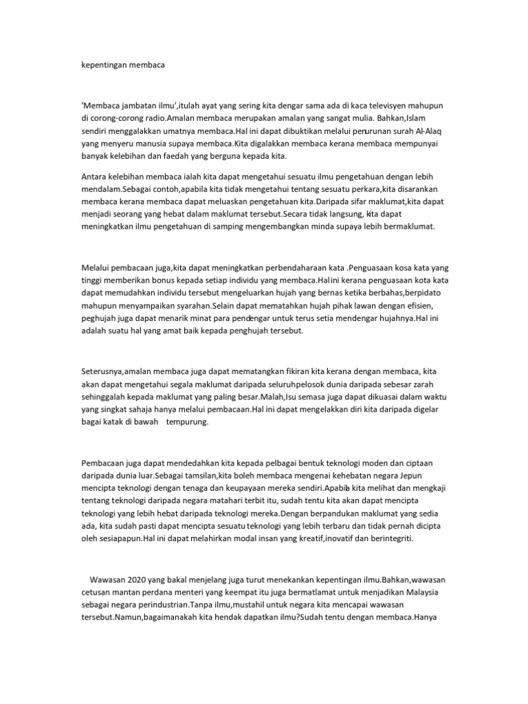 Related : Karangan Kepentingan Amalan Membaca / Amalan membaca masih kurang diamalkandalam kalangan masyarakat kita..