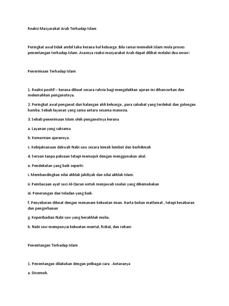 Reaksi Masyarakat Arab Terhadap Islam - Mereka memiliki rasa cinta berlebihan terhadap sukunya.. A) bagaimanakah nabi muhammad saw menyebarkan islam? Selanjutnya agama islam bertemu dengan agama jahiliyah yang mampu membawa pembaharuan di berbagai bidang termasuk akhlak, hukum, serta. Sebahagian besar bangsa arab mengikuti benar dakwah yang disampaikan oleh nabi ismail as iaitu menyeru semua orang kepada agama bapanya, nabi ibrahim as. Beliau amat terkenal dengan sikapnya yang ringan tulang, senang membantu serta berbuat kebajikan kepada masyarakat sekeliling. 11:37 mata pelajaran tingkatan 5 recommended for you.