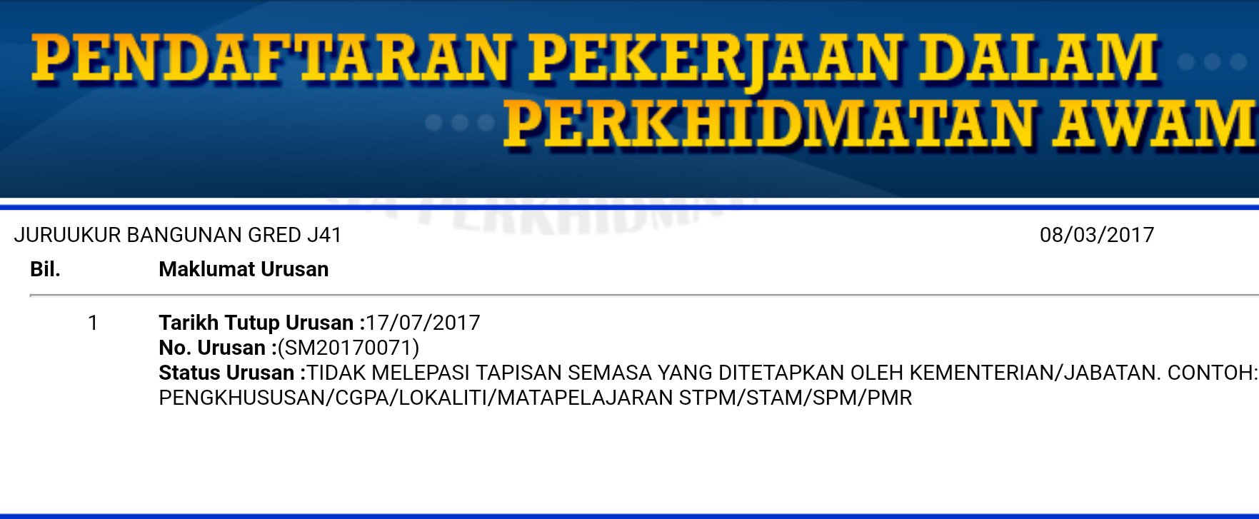 Related : Tidak Melepasi Tapisan Semasa Yang Ditetapkan Oleh Kementerian/Jabatan / Jika berminat, anda juga boleh baca.
