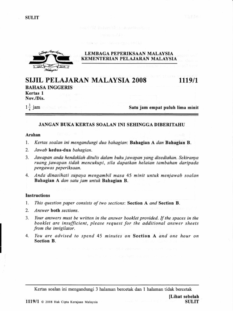 Spm 2015 English Paper 1 - Trial mara 2015 english paper 1 answer scheme.. Sekolah kecemerlangan pentaksiran diagnostik akademik sbp 2015 percubaan sijil pelajaran malaysia bahasa inggeris kertas 2 2 jam 15. Jsu spm (paper 1) english. English score a+ in spm. Chemistry paper 1 is not unpredictable as math and physics spm 2015, let's hope paper 3 chemistry spm 2015 will be kind. 3 5 explain in your own words the meaning of each of the following, as it is used in the text.